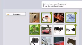 Über das Menü kann man kurze Filmclips über den Aufbau des menschlichen Gehörs und die Benutzung des Hörgeräts auswählen oder mit dem eigentlichen Training beginnen.Das Hörgerätetraining besteht aus 20 Einheiten, die jeweils ca. 30 Minuten in Anspruch nehmen. Jeden Tag soll eine Einheit absolviert werden. Dabei wird ein adaptiver Lernansatz verfolgt: Das Programm ist in der Lage, sich auf den individuellen Lernfortschritt einzustellen. Mit jeder gelösten Aufgabe wird der Schwierigkeitsgrad gesteigert, indem z. B. Töne leiser werden oder Übungen komplexer. Schafft der Nutzer eine Stufe nicht, wird automatisch ein leichteres Niveau für ihn bereitgestellt. So bleibt er motiviert, das Training komplett zu absolvieren.Einige Beispiele für Übungen, die der Schwerhörige absolvieren muss:Geräusche zuordnen:
