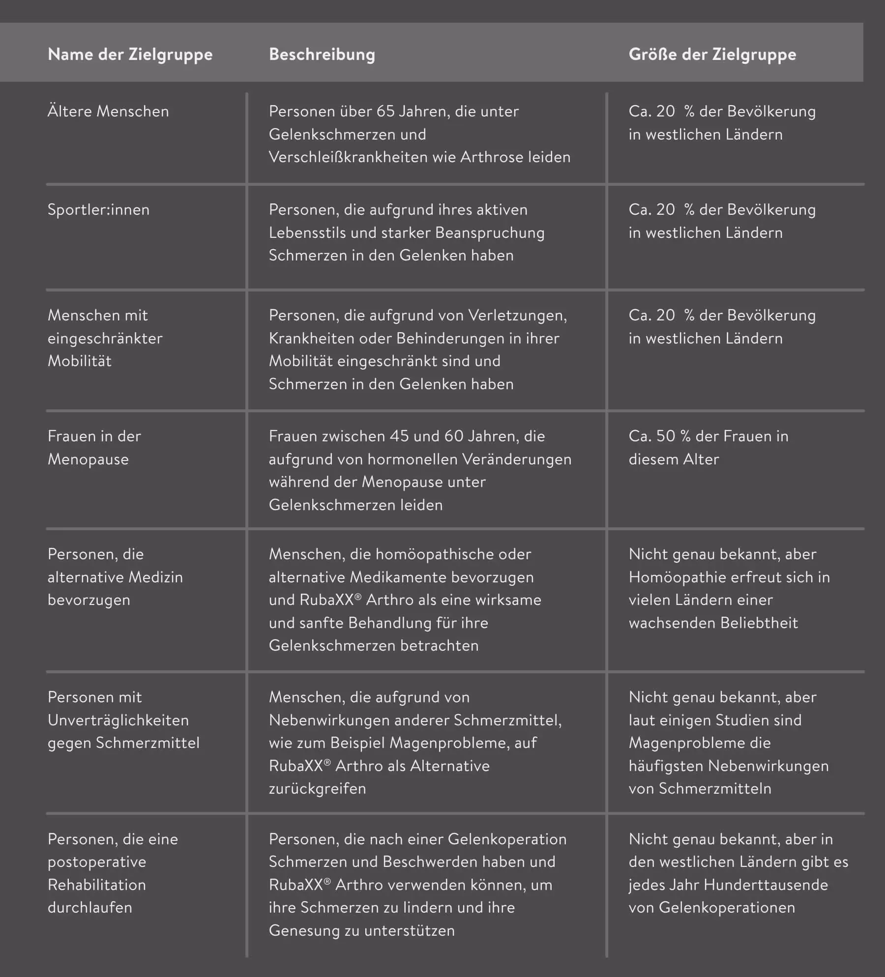 Mögliche Segmente einer Zielgruppe